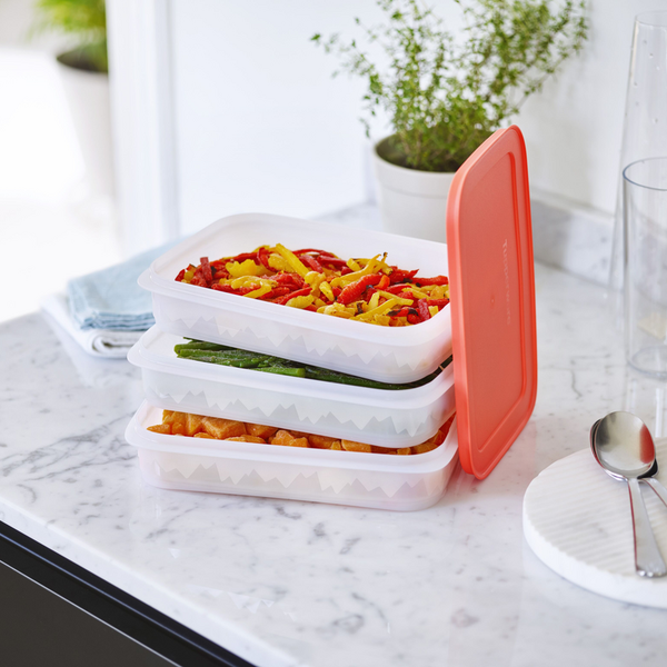 Ook complete maaltijden zijn geen probleem voor de Igloo Stapelschalen. Door de dozen op elkaar te stapelen, bespaar je heel wat opbergruimte in de diepvries. De dozen staan rechtstreeks op elkaar en vormen één combinatie, met één deksel bovenop het geheel. Dat deksel sluit geurvrij af en heeft één grotere lip om de doos makkelijker te openen. Aan de binnenkant zijn de kozen met onze beschermende Color Control-coating afgewerkt om verkleuring te voorkomen.