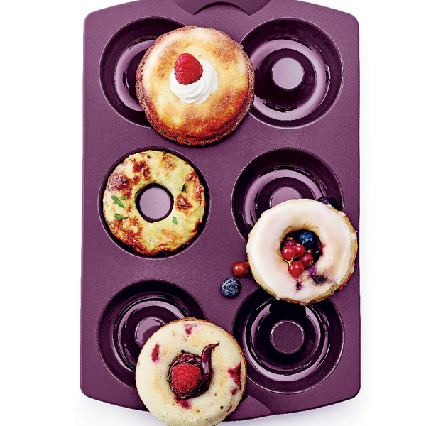 Heb je het nog niet gedurfd om een van onze silicone bakvormen te proberen? Laat je dan aangenaam verrassen! De MultiFlex Rings is een echte inspiratiebron waarmee je je favoriete hapjes, snacks en desserts op een andere manier bekijkt. Gewone taartjes, cheesecake, roomijs, eiergerechten, rijstgerechten en meer maak je nu in een unieke, perfect ronde vorm. Met deze bakvorm zijn de mogelijkheden eindeloos en kun je je creativiteit de vrije loop laten! Geef je gerechten een verrassende toets en vul je bereiding met een zoet of hartig extraatje. De MultiFlex Rings is perfect voor beginners en ervaren bakkers. Invetten is niet nodig, en de donuts komen veel makkelijker los dan bij een metalen bakvorm!