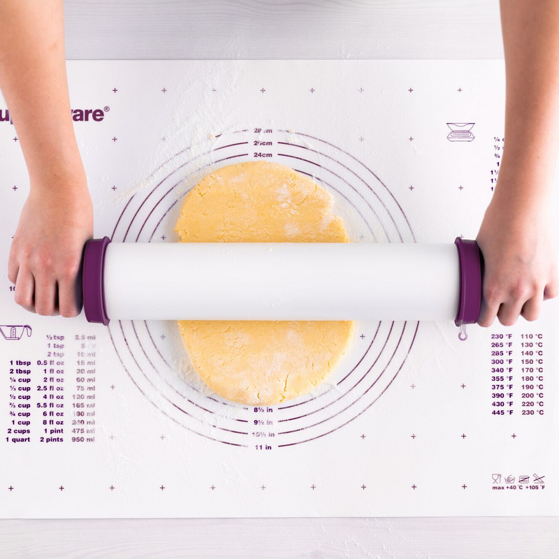 Dit grote, slipvrije deegblad is erg praktisch voor grote én kleine banketbakkers. Vooral dankzij de handige hulpmiddelen die op het oppervlak gedrukt zijn, zoals cirkels met verschillende diameters die je helpen de juiste grootte voor je springvorm uit te rollen. Met het stippenrooster bepaal je eenvoudig de juiste grootte voor je plaatkoek, en de omrekeningstabellen zijn handig als je een recept uit het buitenland wilt uitproberen met maataanduidingen die je niet kent. Met dit deegblad wordt bakken kinderspel!