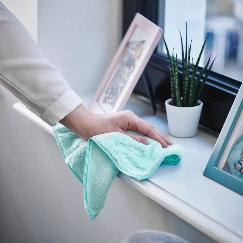 Weg met stof! Vertrouw op ons ongeëvenaarde Stofdoekje van gerecycleerde microvezelstof om betrouwbaar en duurzaam te poetsen. De twee zijden hebben elk een andere textuur, dus kun je met één doekje tafels, legplanken, schermen, toetsenborden en nog veel meer afstoffen en oppoetsen!